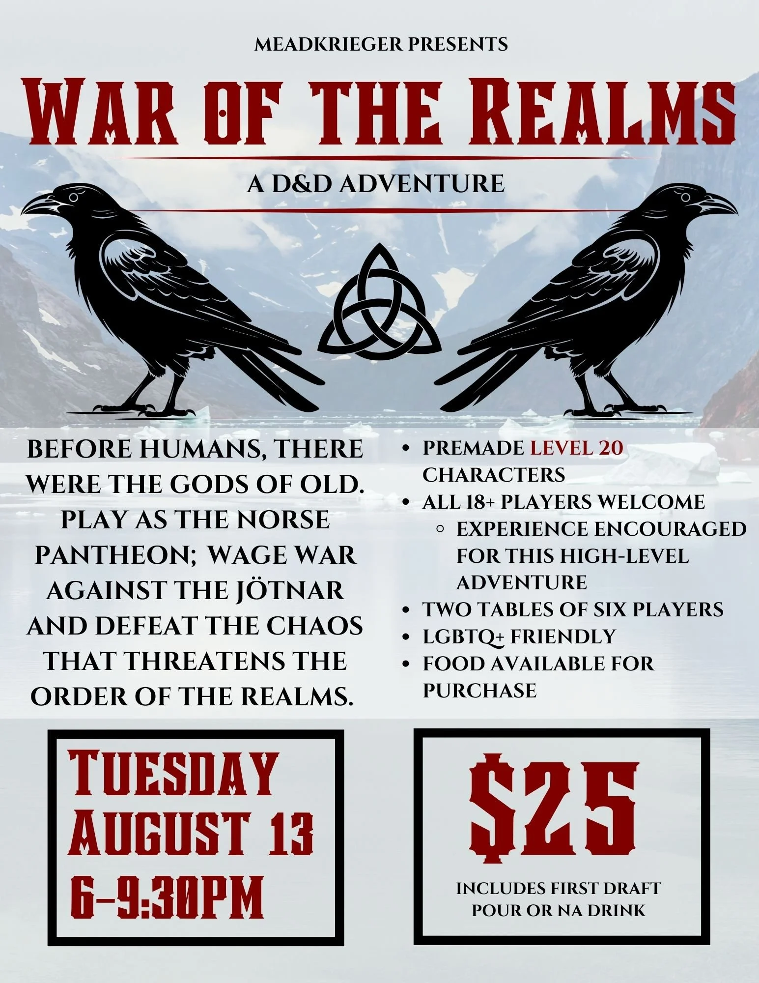 $25 - Includes first draft pour or NA drink