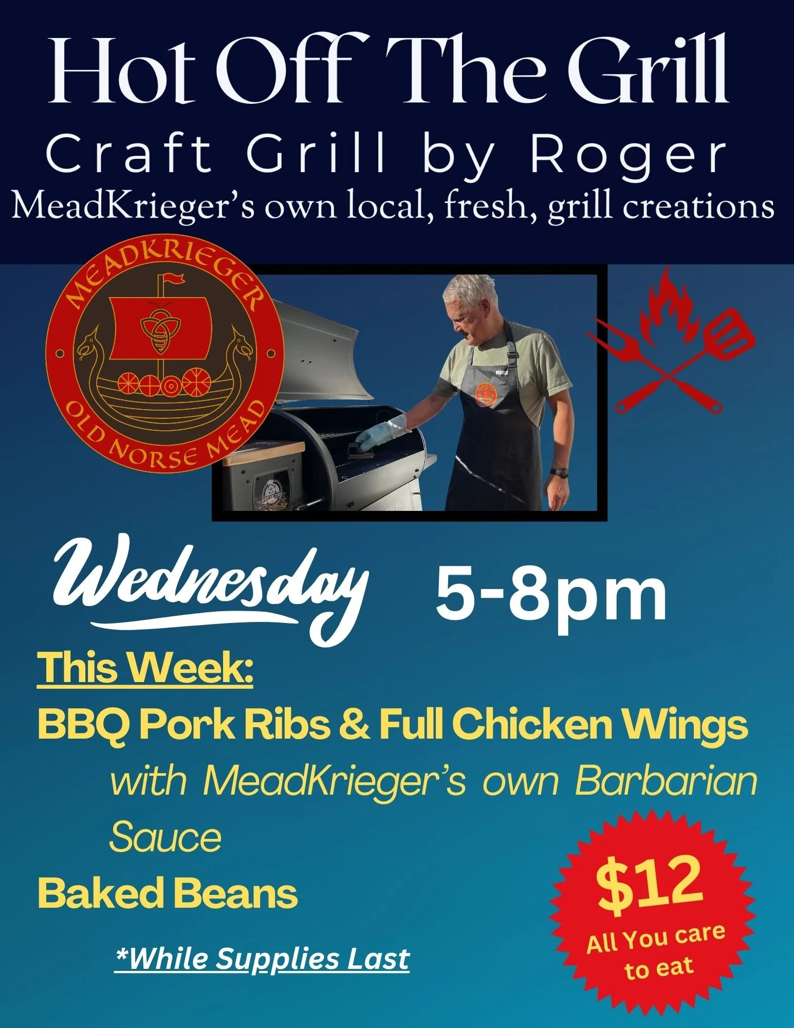 Roger is firing up the grill for all-you-care-to-eat BBQ!
