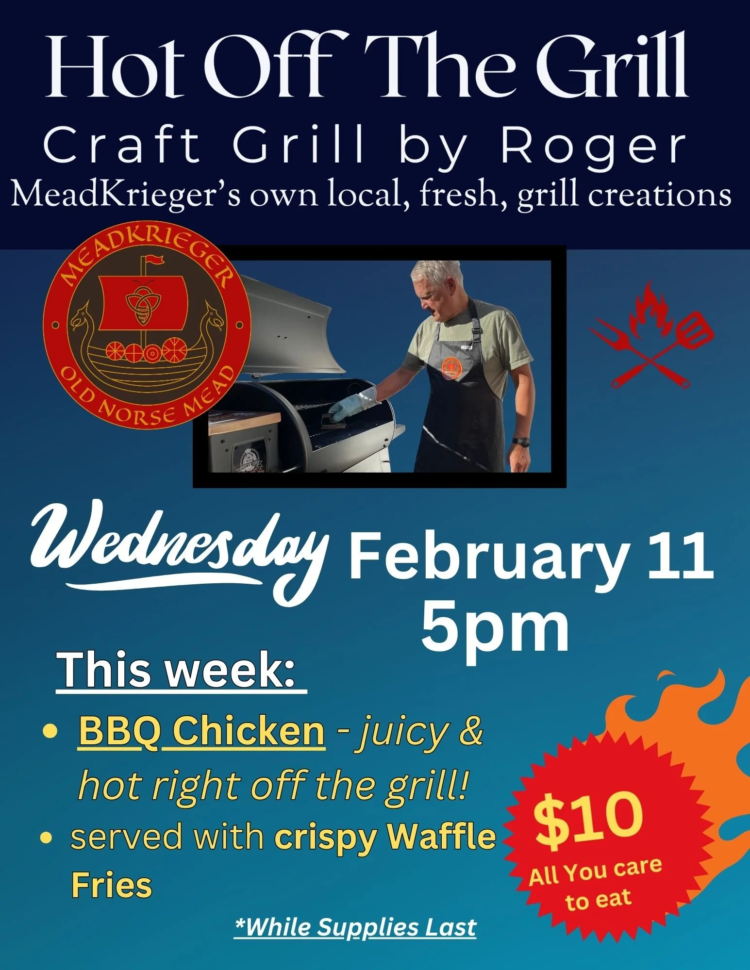 Roger is firing up the grill for all-you-care-to-eat BBQ! Stay Tuned for his special Valentine’s grill special! ❤️