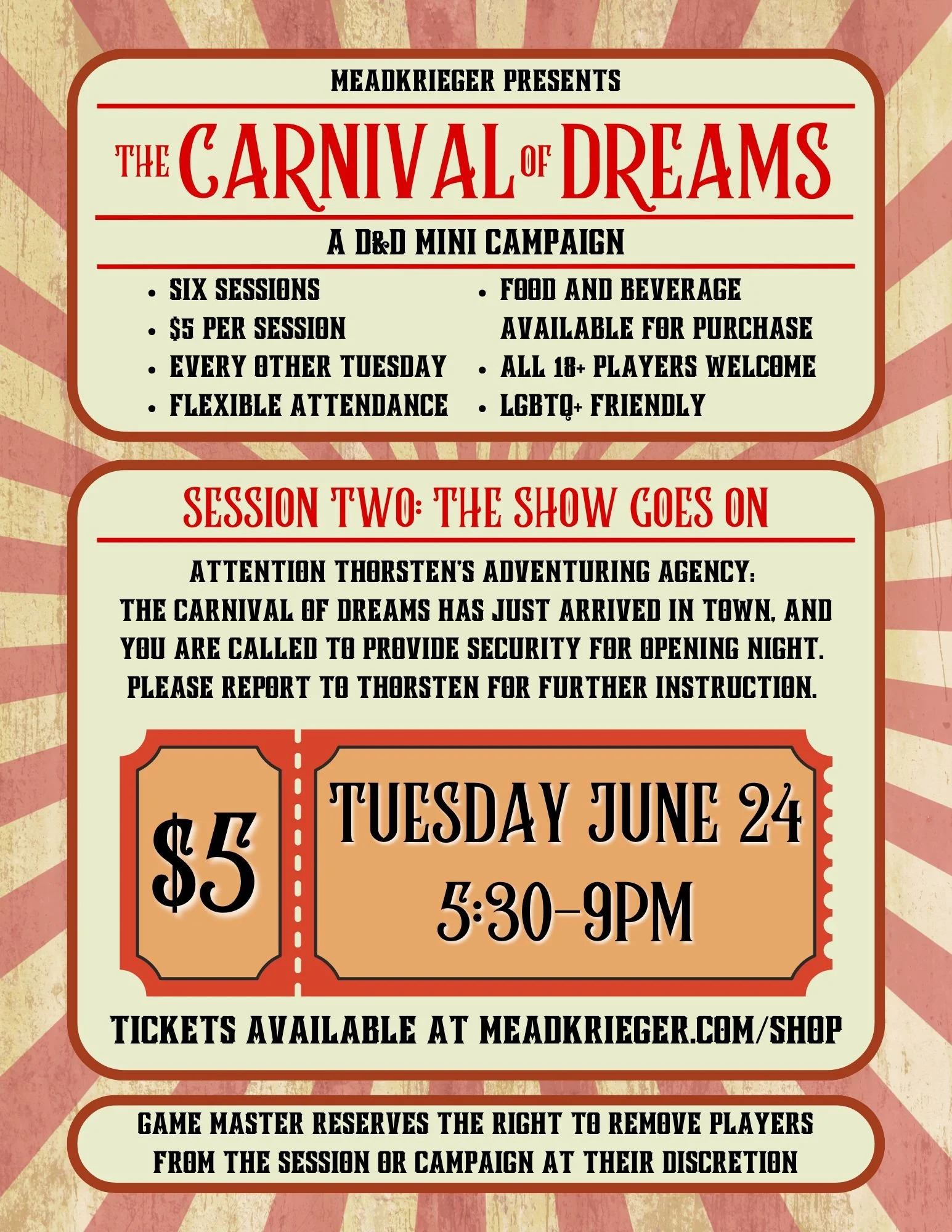 The Carnival of Dreams has just arrived in town, and you are called to provide security for opening night.